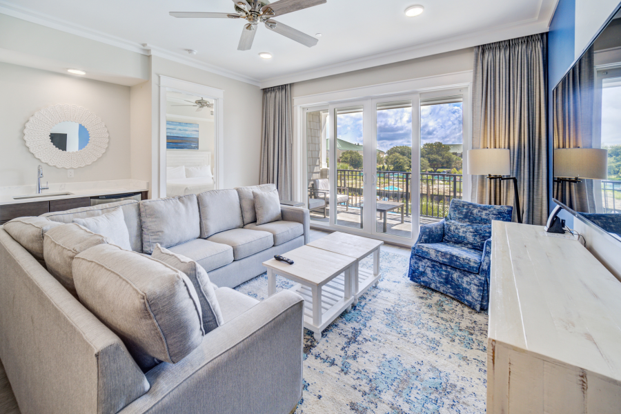 Enjoy direct access to Henderson Beach Resort’s action-filled pools from this spacious one-bedroom condo on the first floor. Features a king bed in the master bedroom, a bunk bed nook, and a sleeper sofa.