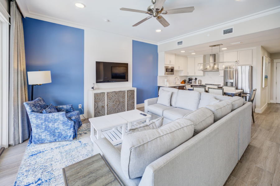 Enjoy spacious accommodations featuring views of the best of both worlds: the awe-inspiring emerald waters of the Gulf Coast and the action-filled fun of the resort pools. Relax in spacious accommodations with a king bed in the master bedroom, a bunk bed nook, and a sleeper sofa.