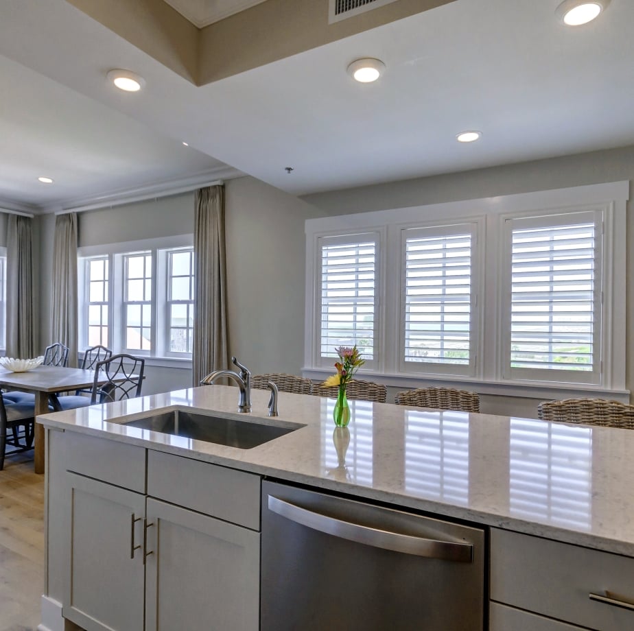 Take in sparkling pool views in this spacious condo located on the north end of our property, in the Parkside Complex. This east-facing two-bedroom condo overlooks the Parkside Pool and features two king bedrooms, a bunk bed nook, and a sleeper sofa.