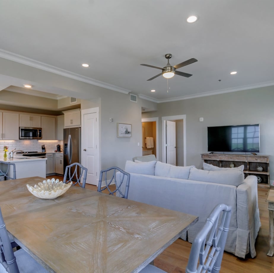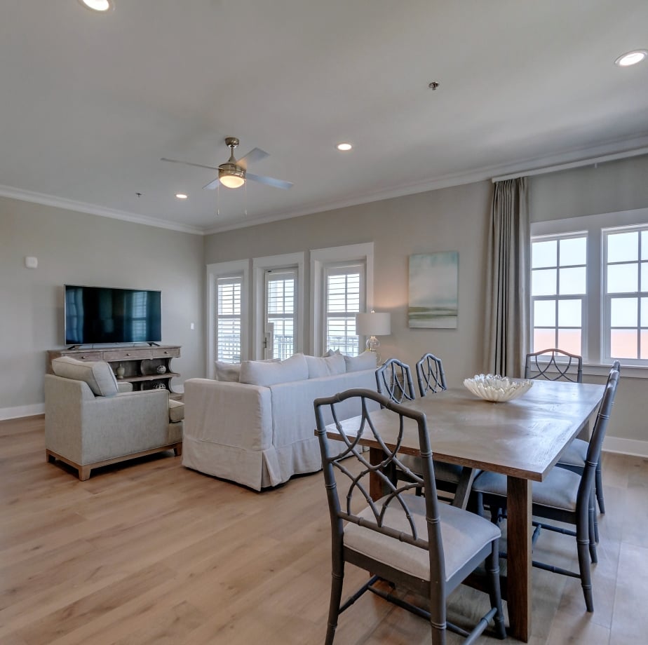 Take in action-filled views of Henderson Beach Resort’s sparkling pools in this spacious condo. Features king and queen beds, a bunk bed, and a sleeper sofa.