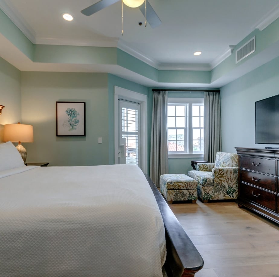 Enjoy direct access to Henderson Beach Resort’s action-filled pools from this spacious two-bedroom condo. Located on the first floor, it features king and queen beds, a bunk bed, and a sleeper sofa.